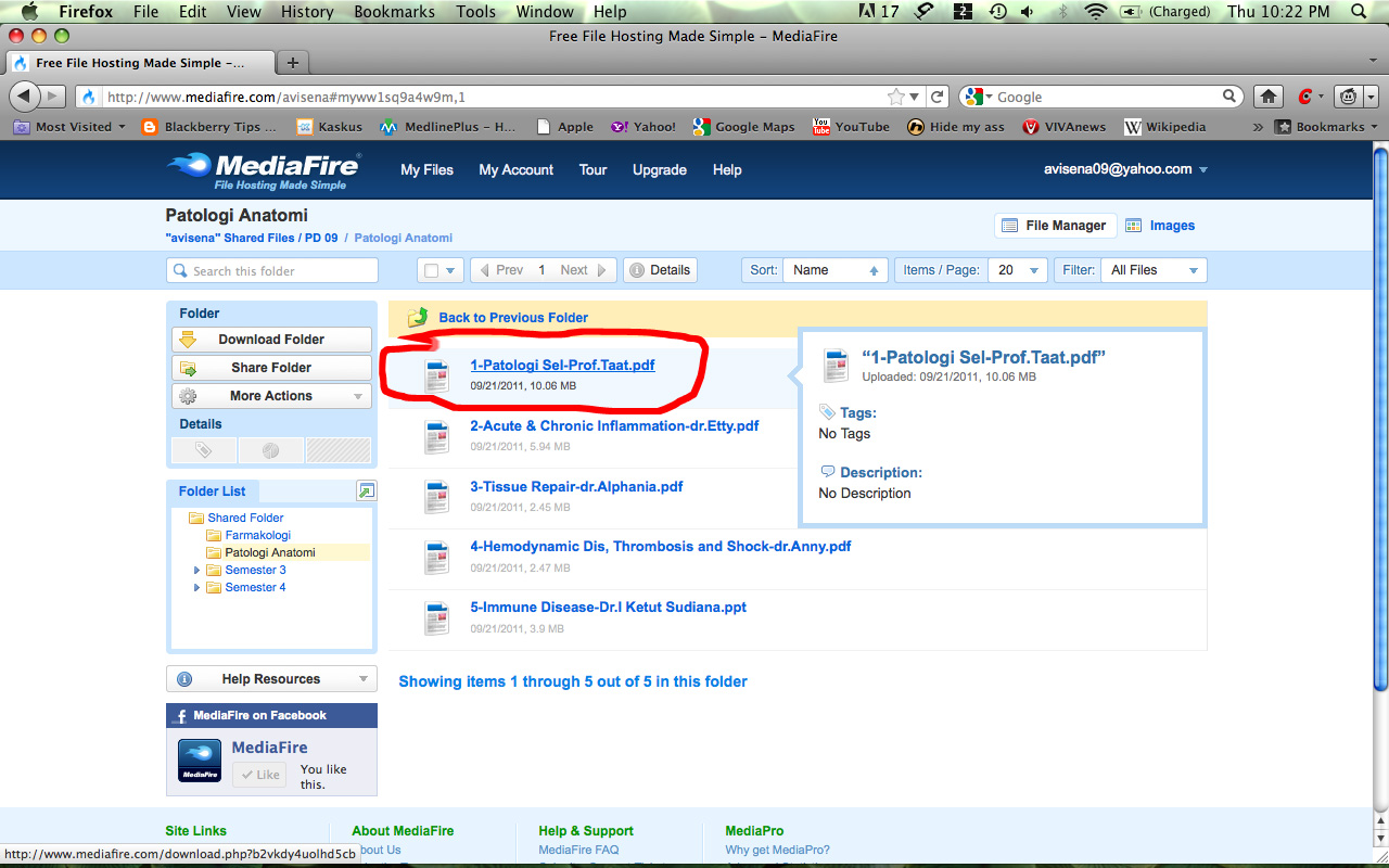 2.Setelah beberapa saat, beberapa subfolder(mirip dengan windows explorer) materi kuliah akan tampak di layar monitor anda Silakan pilih materi kuliah yg akan kalian unduh contoh: pilih Patologi anatomi 3. Akan muncul beberapa file materi kuliah (contoh: patologi anatomi). Langsung aja pilih file yang anda inginkan untuk diunduh